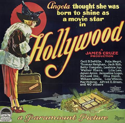 A film called Hollywood was released that same year. It had thirty stars and twenty screen celebrities, including Pola Negri and Cecil B DeMille. It was described as ‘a swift moving story of a movie– struck girl who tried to climb the throne of success – a gripping, throbbing, irresistibly human story.’