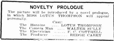 A winter’s night at the Lyceum Theatre, Sydney. Before the screening of the main attraction, Townies and Hayseeds, 18– year– old personality, Miss Lotus Thompson, who featured in the film, made a very special appearance on the stage for the audience.