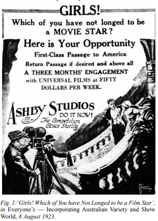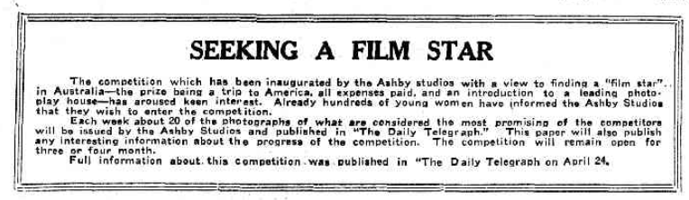 In April, 1923, Ashby Studios at 183 Pitt St, Sydney were, to put it colloquially, really raking in the cash at the expense of naive girls who dreamt of becoming film stars. If the girls didn’t have suitable photographs, Ashby nobly offered their photographic services to the girls at a special rate. The prize was ‘an all expenses paid trip to America, and an introduction to a leading photoplay house.’ It was, in fact, Universal Studios. The best photographs were to be published in the newspaper, and the whole affair was dragged out to beyond September.